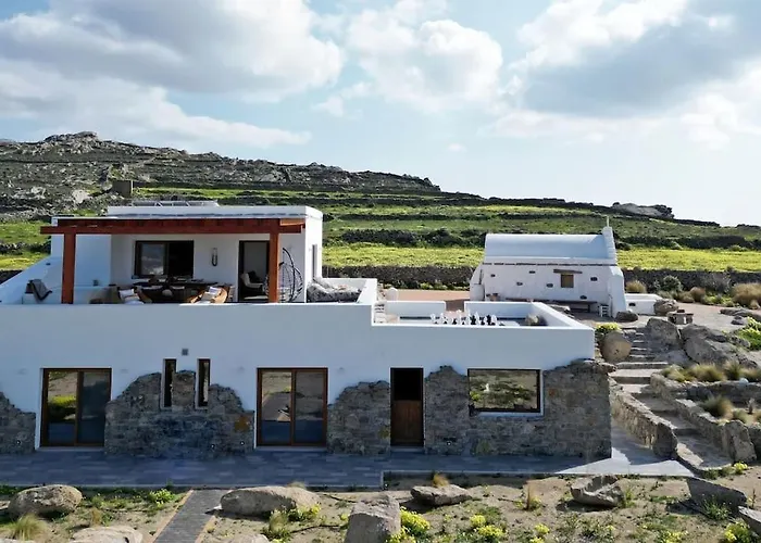 La Villa Ktima Lipsi, Panorama Pool Views Klouvas se encuentra a unos 25 minutos a pie del Museo Arqueológico de Miconos y ofrece un jacuzzi. Situada a 2 km del Puerto Viejo de Mykonos, la villa cuenta con una terraza con vistas al mar.